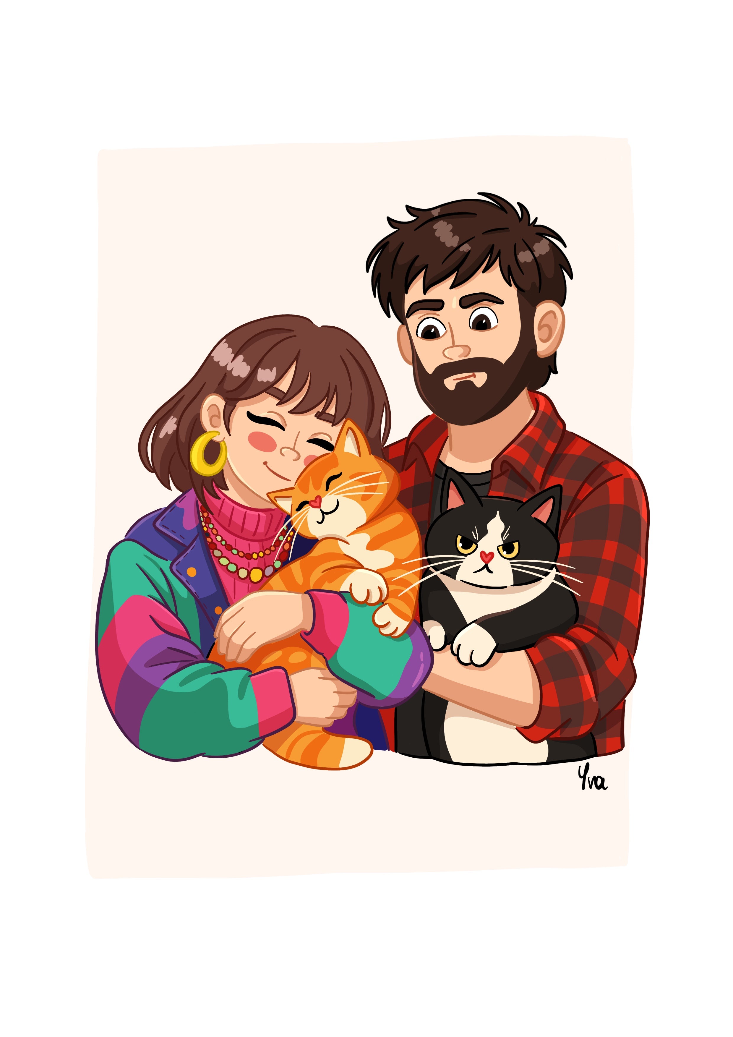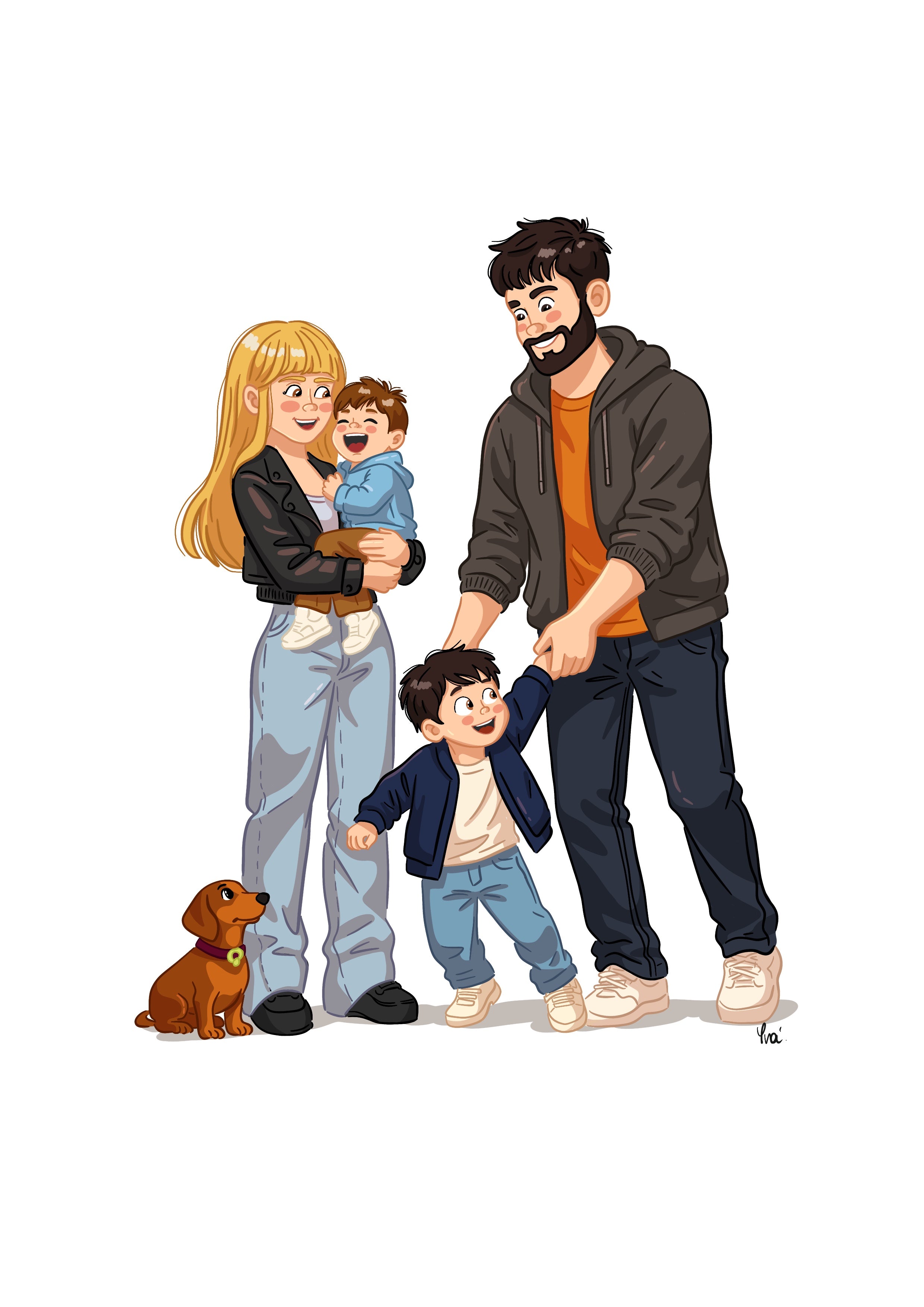 Chaque portrait est réalisé à la main dans mon style, avec attention et douceur.